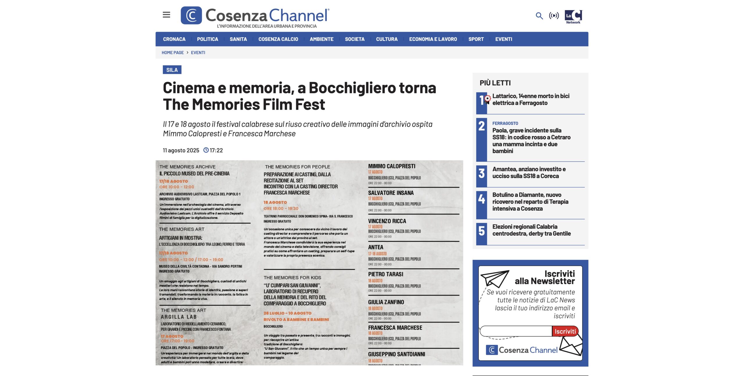 Il 17 e 18 agosto a Bocchigliero, al via la seconda edizione dell'evento